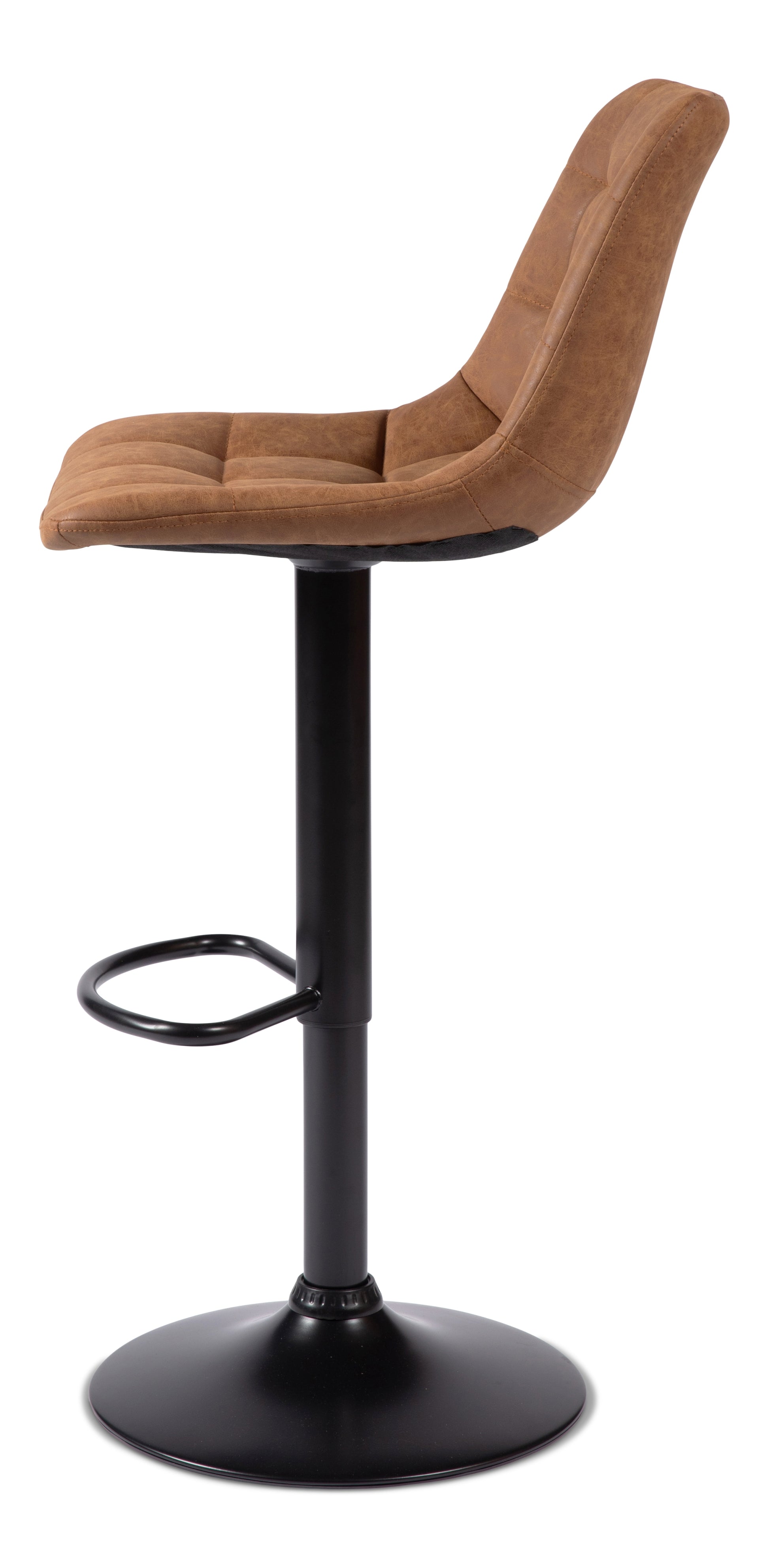 Elevate your home's style with these modern Nova Bar Stools from Your Price Furniture.com. The seats feature elegant channel tufted stitching and are generously padded with foam, wrapped in sophisticated Yangba matt faux leather for superior comfort. Each stool boasts a robust steel frame with a trendy matt black powder coating, while the round base ensures excellent stability with its anti-slip rubber ring to protect your flooring. The adjustable height mechanism allows customisation from 63 to 83 centimetres, and the 360-degree swivel functionality makes socialising effortless. These versatile stools are perfect for breakfast bars, kitchen islands, or dining rooms, combining practicality with contemporary design. The built-in footrest and supportive backrest provide exceptional comfort for extended seating. Each stool can support up to 110 kg, making them both sturdy and reliable. Simple home assembly is required, and they come with a one-year warranty for domestic use. These sophisticated bar stools seamlessly blend comfort, functionality, and style to create the perfect seating solution for your modern home.