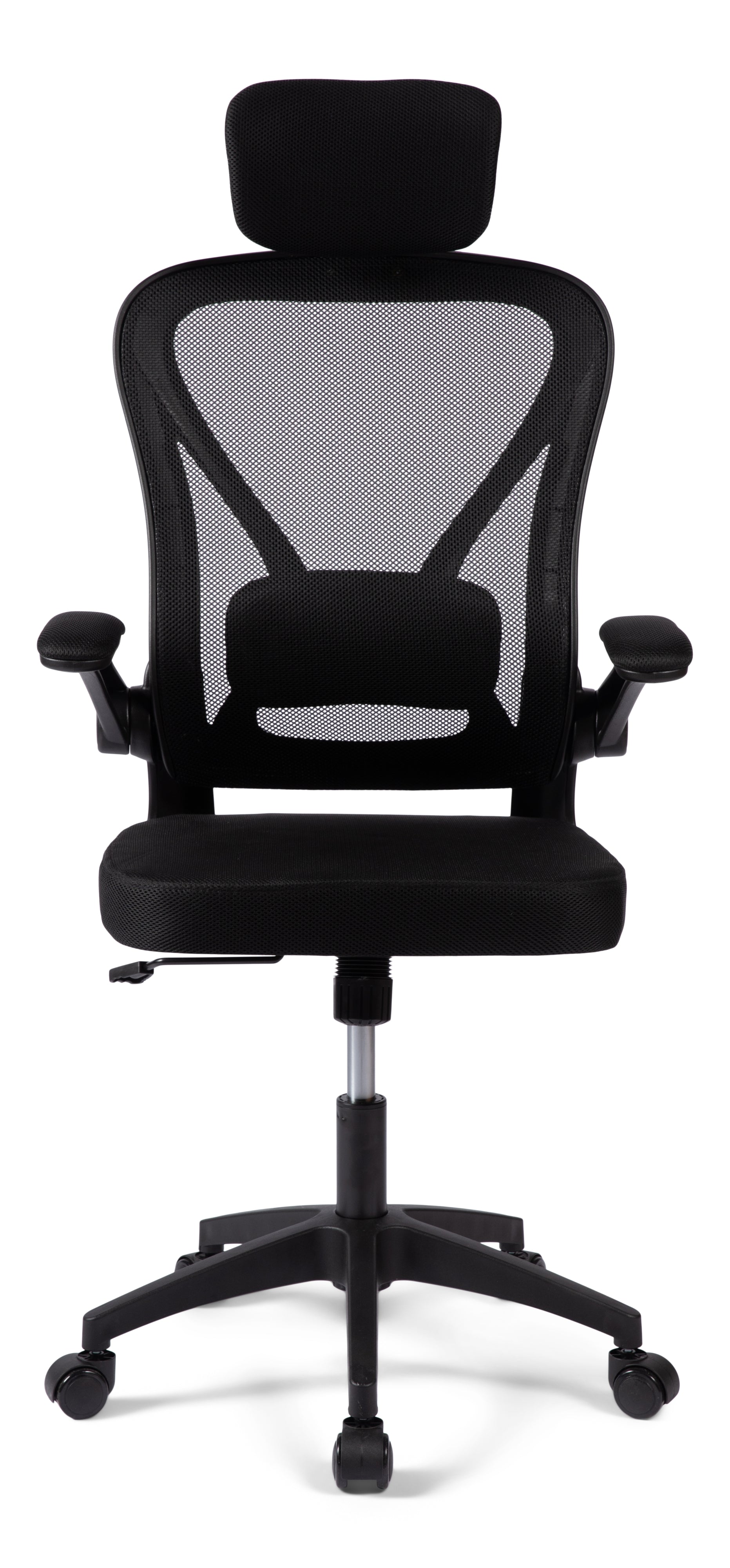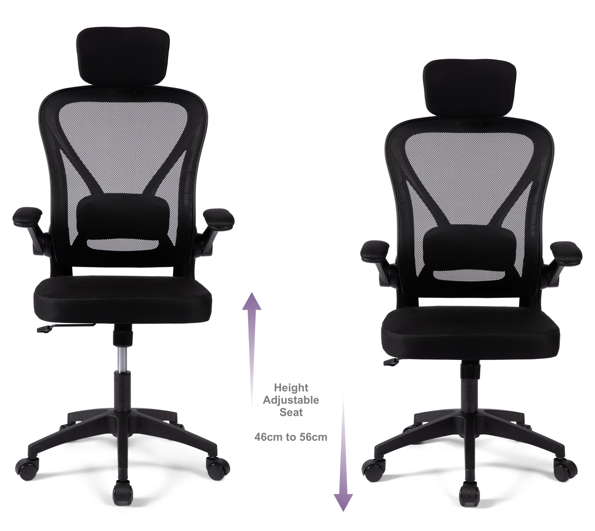 The Litton black mesh home office chair combines modern design, comfort, breathability, and everyday functionality at an incredibly keen price point. Its ventilated mesh back promotes airflow to keep you cool while you sit, and the fixed lumbar support and ergonomic backrest design help look after your back while you work or play. The height-adjustable, generously padded seat provides cushioned seating with high density foam, and the foldable armrests offer stable forearm support. The smooth 360-degree swivel base allows easy movement in any direction. Designed with a clean, contemporary profile, this chair is an excellent fit for home offices, study spaces, or any workspace that values comfort, simplicity and affordability. Please note home assembly is required.
